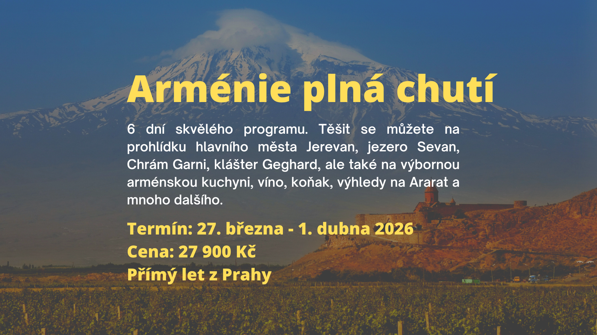Budeme si užívat výhledy na posvátnou horu Ararat a poznávat okolí Jerevanu v malé skupině cestovatelů. Nebude chybět ochutnávání místních specialit a poznávání zdejší nádherné přírody, klášterů a chrámů.